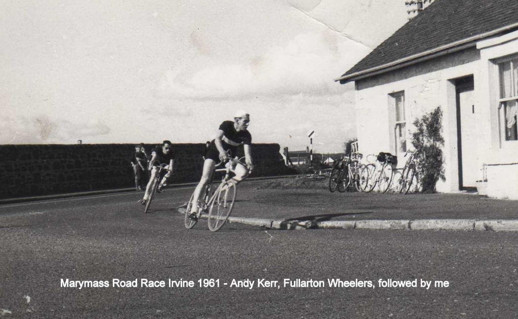 My National Service ended in March 59 and I returned home to Kilmarnock and resumed racing with Wallacehill. I entered as many road races as I could and after a couple of years I began to finish with the leaders - but never managed a win. On one occasion I was sprinting shoulder to shoulder with Andy Kerr of Fullarton Wheelers but finished second. As we came to a halt Andy turned to me and said 'you had me beaten - why the h*** did you change gear in the last 100 metres??'. A well, we live and learn.