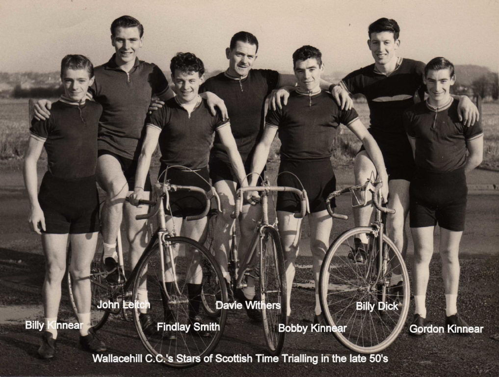 The Kinnears and other talented riders (not me) dominated Scottish cycling time trials till the end of the fifties. On one famous occasion the Wallacehill Club broke the Scottish 25 mile team record three times in the same event - and with six different riders contributing!