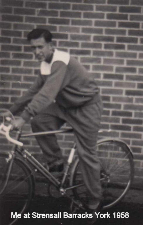 Four years after joining the Club I was conscripted to do National Service in the military and found myself in the Royal Army Pay Corps. After my initial training I was posted to Strensall Camp, outside York, to look after pay for the Kings Own Yorkshire Light Infantry. There I was able to resume cycling and rode in the colours of the Army Cycling Union. I also becames a member of the British League of Racing Cyclists so that I could start to ride road races and did so mainly in the Bradford Area.